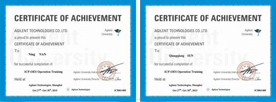 通过培训,两位研究人员基本掌握了ICP-OES理论知识、标准操作流程、软件应用、仪器维护及故障诊断等,并与10月30日下午顺利通过考试,取得培训证书。此次ICP-OES培训为日后更好地开展科研工作,发展地方经济提供一定的技术支持。